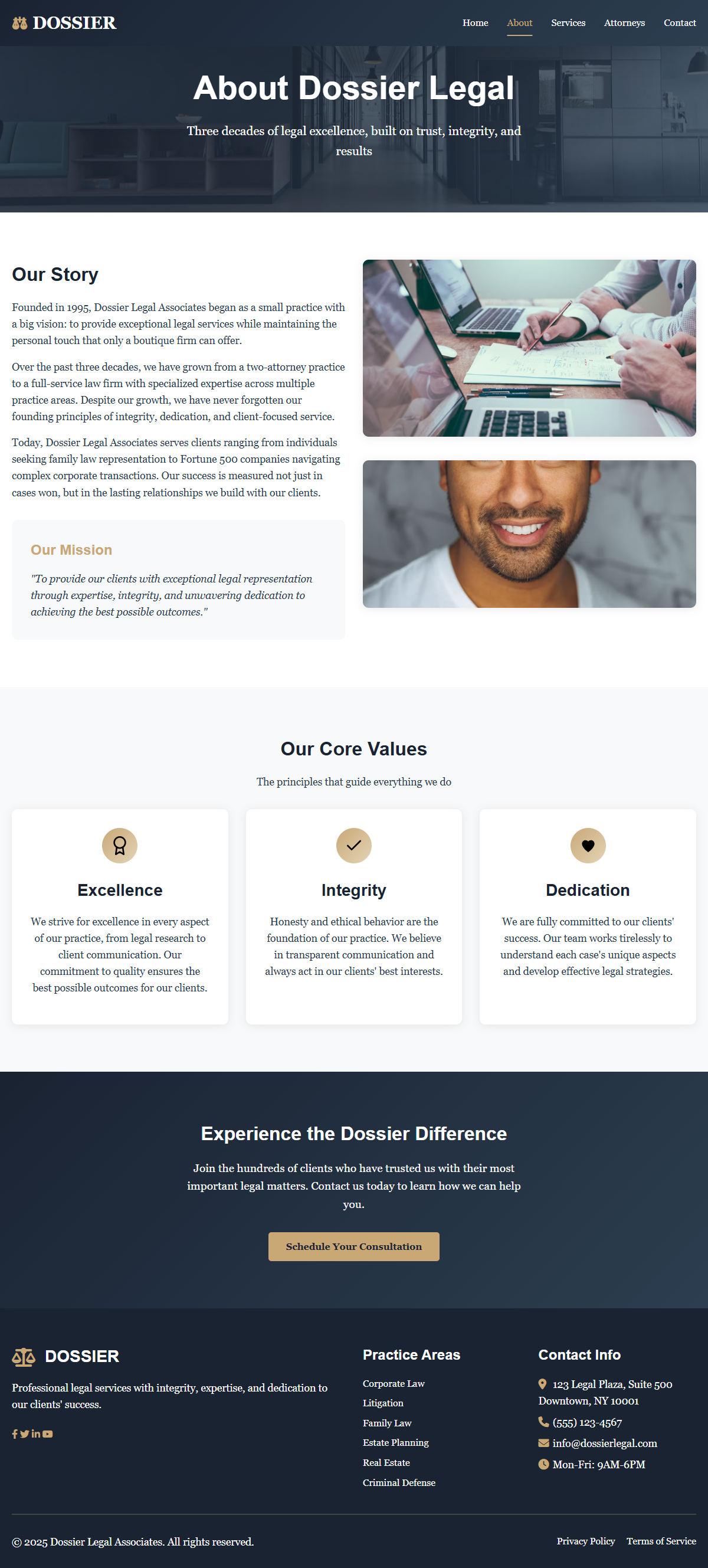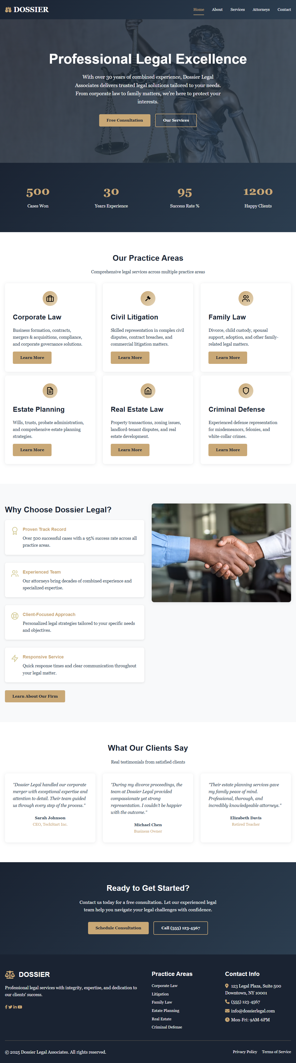 Transform your legal practice into a commanding online presence with Dossier - the ultimate portfolio template for lawyers, attorneys, and legal firms seeking to establish credibility and attract clients.