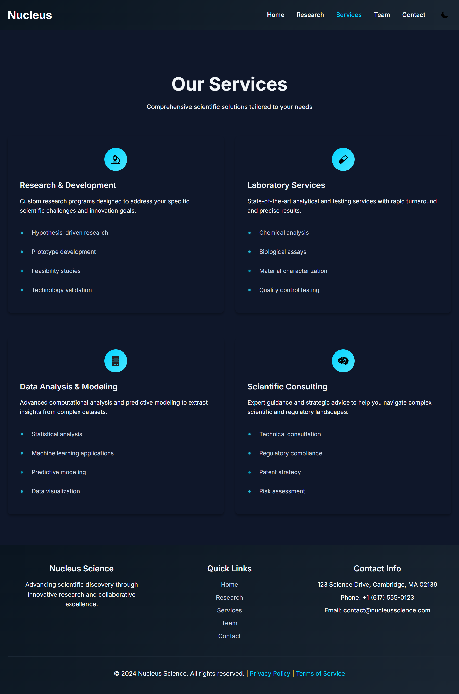 Transform your scientific organization into a compelling online presence with Nucleus - the ultimate website template for research institutions, laboratories, and science companies.