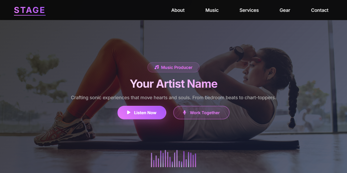 Showcase your music production skills with Stage - a cutting-edge portfolio template designed specifically for music producers, artists, and audio professionals.